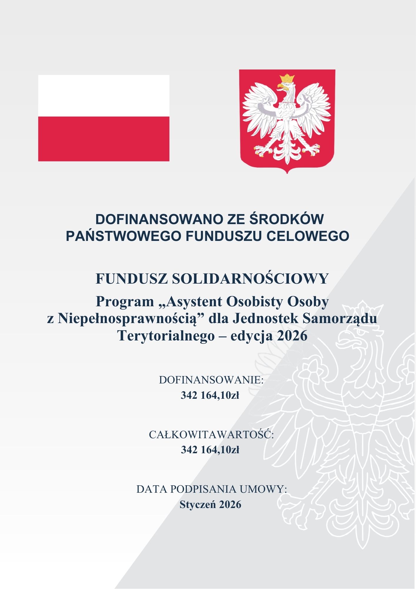 Treść zakładkiGmina Orońsko otrzymała dofinansowanie ze środków Funduszu Solidarnościowego na realizację Programu „Asystent osobisty osoby z niepełnosprawnością” dla Jednostek Samorządu Terytorialnego – edycja 2026